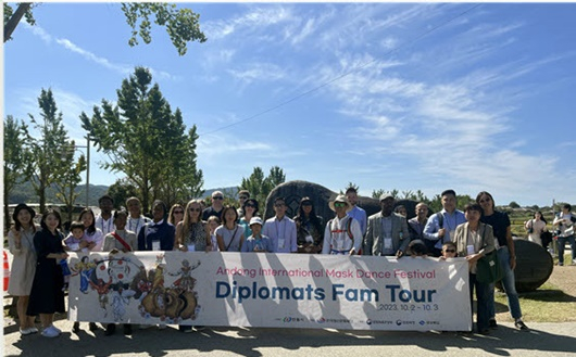 미국, 우크라이나, 라트비아 등 7개국 외교사절 및 가족 30명은 지난 2일부터 3일 안동국제탈춤페스티벌 개막식 참석 겸 안동 팸투어에 참여해 유네스코 문화유산으로 등재된 하회마을을 비롯한 도산서원, 국학진흥원, 안동소주음식박물관을 방문해 우리나라 정신문화의 수도인 안동의 유교문화와 전통문화의 진수를 경험했다.