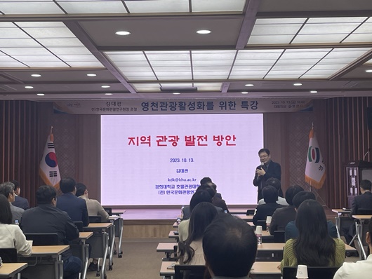 영천시는 지난 13일 시청 대회의실에서 직원 50여 명이 참석한 가운데 김대관(전) 한국문화관광연구원장을 초청해 영천관광 활성화를 위한 특강을 실시했다.