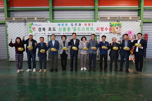 [경북=경북IT뉴스] 경북도농업기술원은 지난 16일 경산시 다금영농조합법인 수출선별장에서 경북도 육성 신품종 포도 ‘골드스위트’시범수출 선적식을 개최했다.