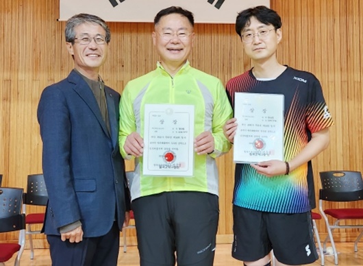 [칠곡=경북IT뉴스] 김재욱 칠곡군수가 지난 21일 ‘제14회 칠곡군수기 탁구대회’에서 세무과 강구섭 주무관과 한팀으로 출전해 남녀초심부 복식 3위에 입상했다.