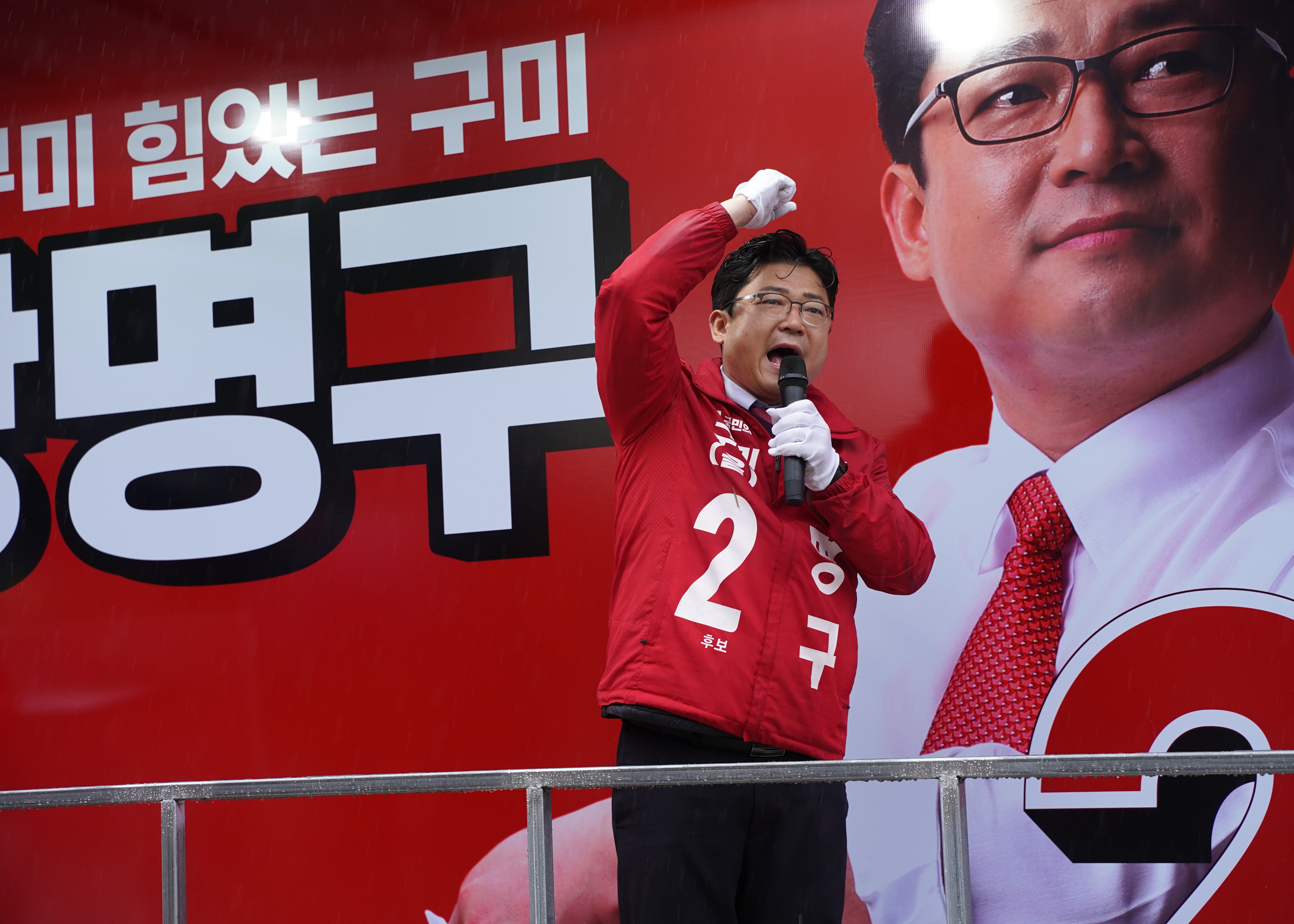 이어 “대한민국 제1의 산업 도시였던 구미가 기업들이 수도권 및 해외 등으로 이전하며 힘을 잃어가고 있다”며, “박정희 대통령께서 만 46세에 조국 근대화의 위대한 여정을 시작했던 것처럼, 만 46세 강명구도 새로운 대한민국을 만들고 구미의 영광을 되찾기 위해 온 힘을 다하겠다.”고 목소리를 높였다.