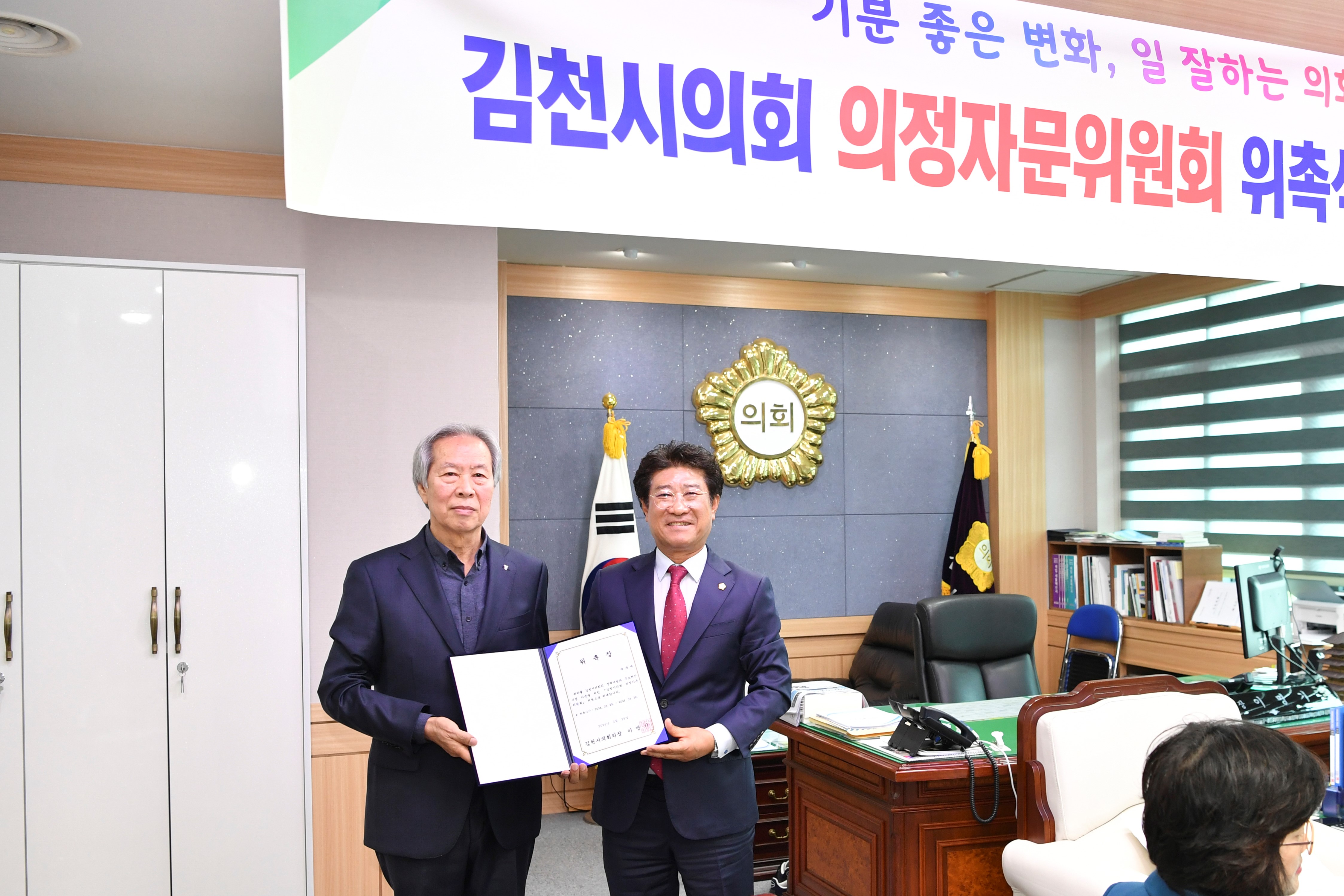 이명기 의장은 “각 분야에서 활발히 활동하고 있으신 의정자문위원님들의 지식과 고견을 의정활동에 충분히 접목하고 활용될 수 있게 지원해 김천시민들이 긍정적인 변화를 체감할 수 있도록 최선을 다하겠다.”고 말했다.