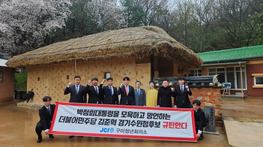 [구미=경북IT뉴스] 구미청년회의소(회장 이정호)가 3일, 박정희대통령 생가에서 회원들과 함께 김준혁 더불어민주당 경기 수원정 후보 사퇴를 촉구하는 성명서를 발표했다.