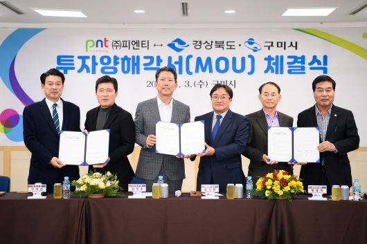 [구미=경북IT뉴스] 구미시가 3일 시청에서 김장호 구미시장, 황중하 경북도 투자유치실장, ㈜피엔티 관계자 등이 참석한 가운데 구미국가산업단지(구미하이테크밸리 1단계) 내 공장 신설을 위한 투자양해각서(MOU)를 체결했다.