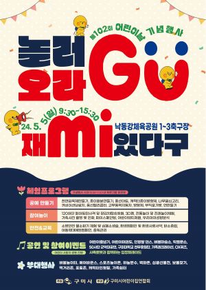 [구미=경북IT뉴스] 구미시는 오는 5월 5일 낙동강 체육공원에서 ‘제102회 어린이날 기념행사’를 개최한다.