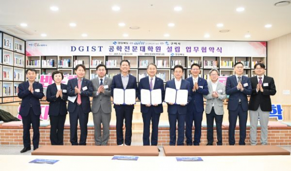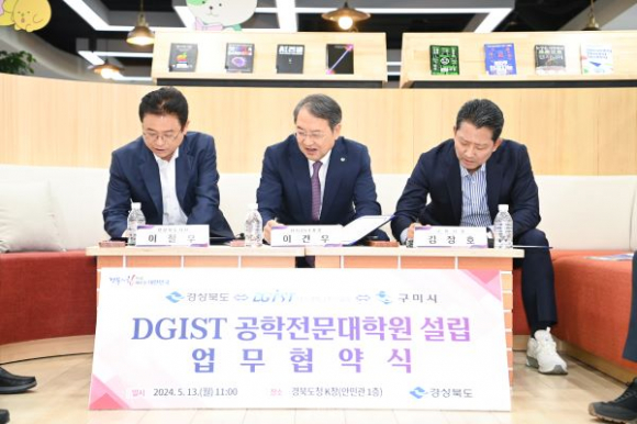 구미시는 13일, 경북도청에서 이철우 경북도지사, 이건우 DGIST총장, 김장호 구미시장이 참석한 가운데 ‘DGIST 공학전문대학원(이하 DGIST 경북구미캠퍼스)’을 구미에 설립하는 업무협약을 체결했다.