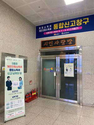 통합신고 창구는 종합소득세와 개인지방소득세 확정신고·납부의 달을 맞아 고령자와 장애인 등 전자신고가 어려운 납세자들의 불편을 해소하고자 김천시청 본관 1층 시민 사랑방에 설치됐다.