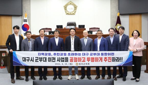 [칠곡=경북IT뉴스] 칠곡군의회(의장 이상승)는 19일 본회의장에서 대구시와 국방부에 대구 군부대 통합이전과 관련해 공정하고 투명한 행정절차 이행을 강력히 요구했다.
