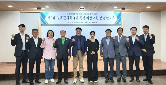 이상승 칠곡군의회 의장은 “이번 교육을 통해 칠곡군의회 의원들과 직원들의 성인지 감수성을 향상시키고, 조직 내 청렴문화를 확산시켜 군민으로부터 신뢰받는 청렴하고 공정한 의회가 될 수 있도록 적극적으로 노력하겠다”고 밝혔다.