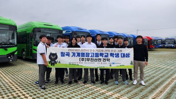 18일, 칠곡군에 소재한 경북기계명장고등학교 학생들이 철도차량·전기버스 제작 전문기업인 (주)우진산전 김천공장 현장을 견학하고 취업 프로그램을 진행했다.
