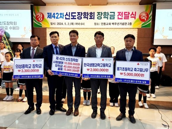 [안동=경북IT뉴스] (사)신도장학회(대표 김점곤)가 가정의 달을 맞아 지난 5월2일 안동교회 100주년기념관에서 '제42차 신도장학회 장학금 전달식'을 갖고 6천500만원을 전달했다.