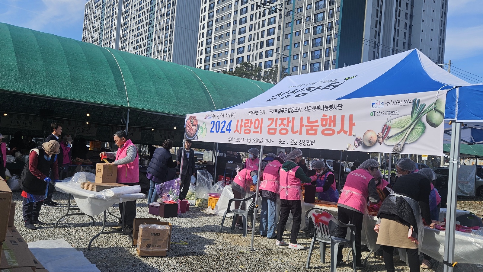 지난 23일, 고아읍 원호리 로컬푸드 싱싱장터에서 구미로컬푸드협동조합이 주최·주관하고, 한국농수산식품유통공사의 후원으로 조합원과 작은행복 나눔봉사단(정우용 대표) 회원들이 함께 김장 담그기 행사를 개최했다.