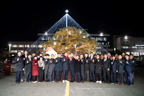 구미시청, 원형화단 `희망과 사랑의 불빛 트리` 점등식 개최