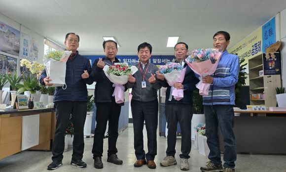 좌로부터 이원희, 김명식, 장재도 지국장(가운데), 이종호, 전명하 승진자