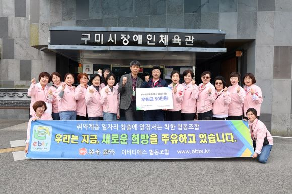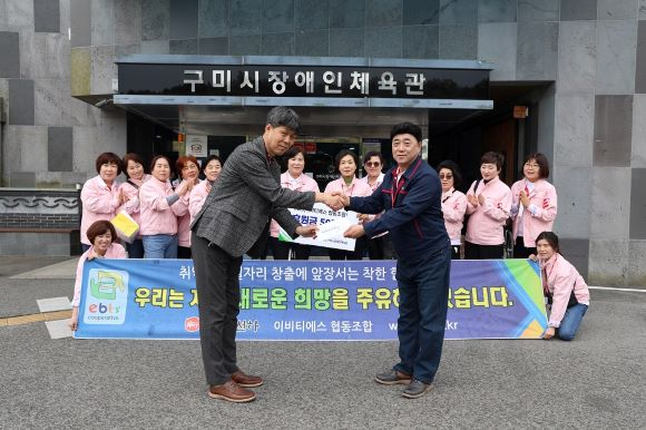 [구미=경북IT뉴스] 사회적 가치를 실현하는 이비티에스협동조합(이사장 이승원/영업총괄 본부장 박병규)이 14일, 구미시장애인체육관(관장 김휴진)에서 지역장애인들을 위한 배식봉사 활동과 함께 후원금 50만원을 전달했다.