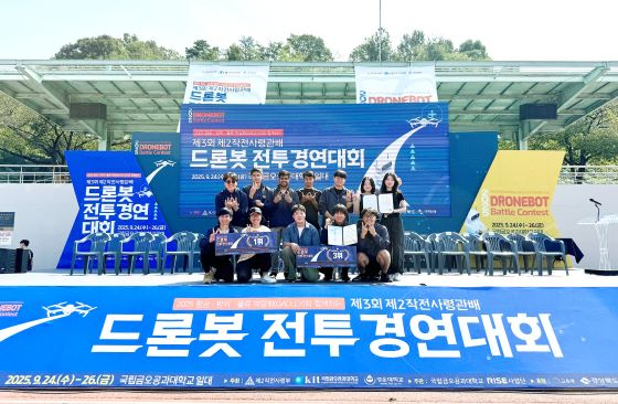 [구미=경북IT뉴스] 국립금오공과대학교(총장 곽호상) 학생들이 ‘2025 제3회 제2작전사령관배 드론봇 전투경연대회’의 일반부 2개 부문(△드론 감시정찰 △로봇챌린지)에서 각각 대상(1위)을 차지했다. 로봇챌린지 부문에서는 1등을 비롯해 2등(최우수상), 3등, 특별상의 모든 부문을 석권했으며, 드론 폭탄투하 부문에서도 3등을 수상했다.