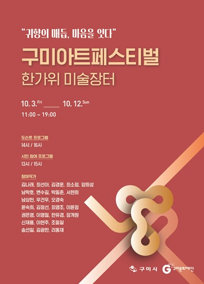 행사는 오전 11시부터 오후 7시까지로 운영되며 자세한 내용은 구미문화재단 홈페이지(www.gucf.or.kr)를 통해 확인 할 수 있으며, 구미문화재단 공간운영팀 ☏ 054-441-7454 으로 문의 하면 된다.