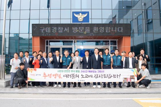 [구미=경북IT뉴스] 구미시(시장 김장호)와 구미시의회(의장 박교상)는 추석 연휴 시작을 앞둔 2일, 시민들이 안전하고 편안한 명절을 보낼 수 있도록 경찰서, 소방서, 군부대, 운수업체 등 비상근무 중인 유관기관을 차례로 방문해 근무자들을 격려했다.