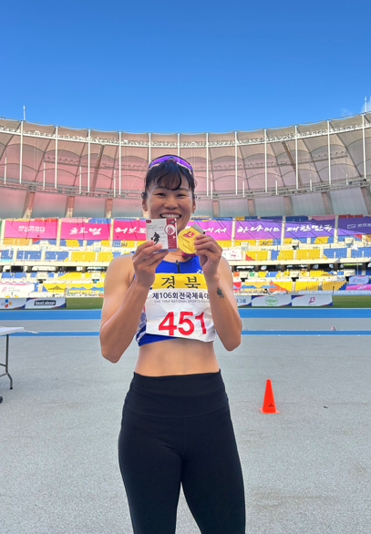 특히, 육상 손경미 선수(구미시청)는 여자 일반부 400m 허들에서 전국체전 4연패를 달성하며, 한국 여자 허들 종목의 간판선수로서 다시 한번 이름을 빛냈다. 또한 최유빈 선수(경운대, 여자대학부 100m)와 박시훈 선수(금오고, 남자고등부 포환던지기)가 각각 금메달을 추가하며, 육상 종목에서만 3개의 금메달을 수확했다.