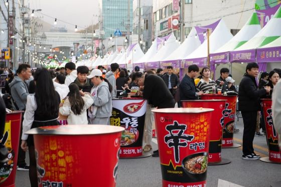 한편 축제 첫날 구미역 1층 구미영스퀘어에 문을 연 ‘구미라면 홍보관(GUMI RAMYUN STATION 475)’은 시민 참여형 콘텐츠인 라면MBTI, 라면뽑기, 인생네컷 등으로 큰 호응을 얻었다. 이 홍보관은 연말까지 상설 운영되며, 특정일에는 라이브 음악 공연과 무소음 디제잉 파티 등 도심형 문화공연이 예정돼 있어 축제의 여운을 이어간다.
