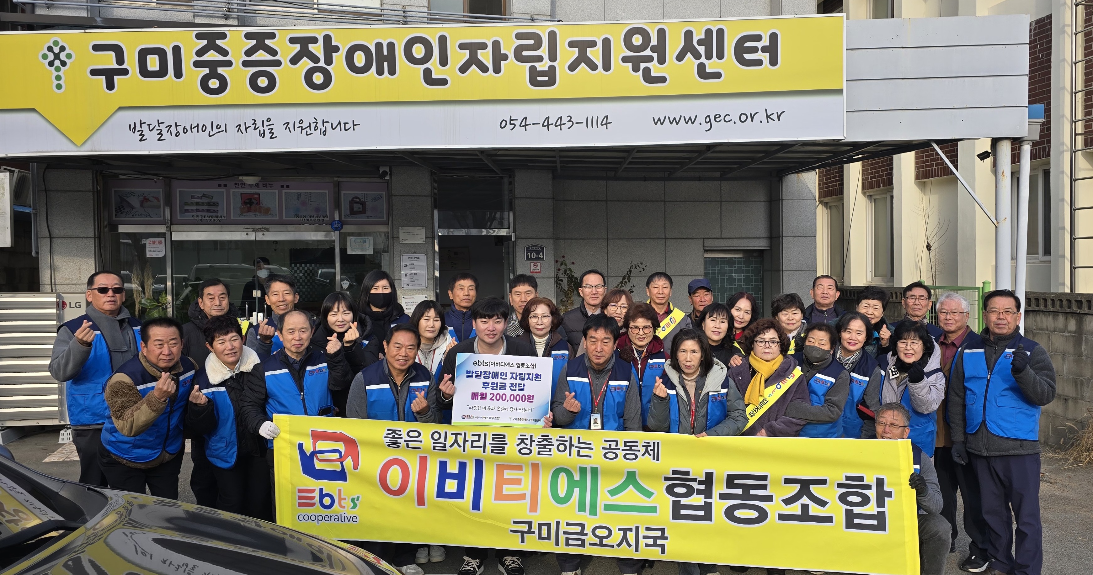 이비티에스협동조합 구미금오지국 장재도 센타장은 “지역 내 장애인 복지 증진에 조금이나마 힘이 되고 싶어 회원들과 함께 뜻을 모았다”며, “앞으로도 지역사회를 위한 따뜻한 나눔을 이어가겠다”고 말했다.