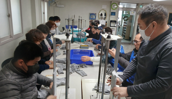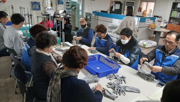 이날, 조합원들은 센터 작업장에서 이용자들과 함께 노력봉사로 장갑과 보풀을 정리하며 장애인과 비장애인이 함께 소통하며, 따뜻한 공동체 문화를 형성해 나갔다.