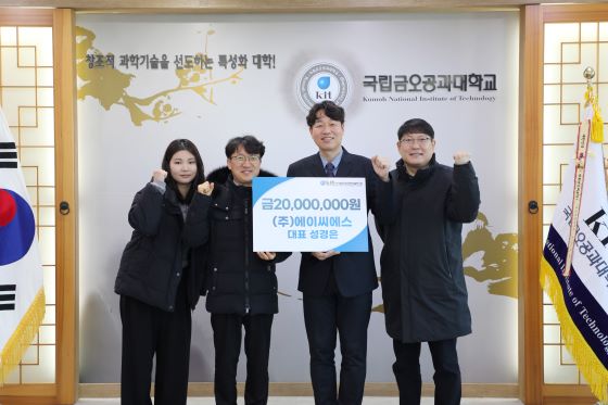 [구미=경북IT뉴스] 국립금오공과대학교(총장직무대리 김종복)가 ㈜에이씨에스(대표이사 성경은)로부터 대학발전기금 2천만 원을 전달받았다.