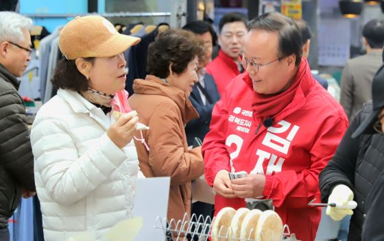김 예비후보는 이날 시장 곳곳을 돌며 상인들과 직접 만나 지역 경제 상황을 청취하고, 장기화된 경기 침체와 소비 위축으로 어려움을 겪고 있는 소상공인들의 목소리를 경청했다.