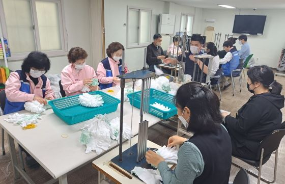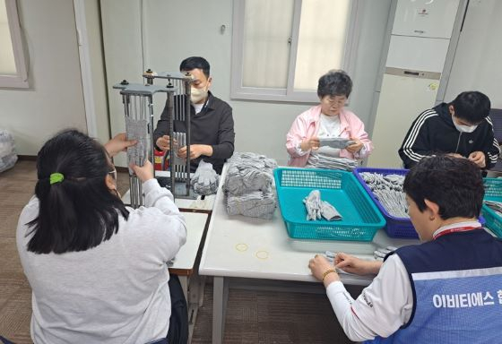 지난 4월 14일, 조합원들은 구미중증장애인자립지원센터를 방문해 십시일반 모은 기금으로 후원금을 전달하고, 관계자들과 함께 현장에서 장갑 보풀 제거 작업 등 봉사활동을 전개했다.
