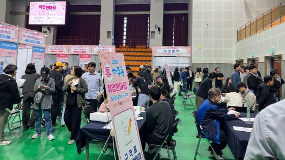 [구미=경북IT뉴스] 구미시는 지난 15일 구미복합스포츠센터에서 ‘2026 春하추동 취업한마당(부제: 구미가 당기는 JOB 페스티벌)’을 성황리에 마쳤다고 밝혔다. 이번 행사는 구미시, 고용노동부 구미지청이 공동 주최하고 취업 유관기관이 공동 주관하여 개최됐다.
